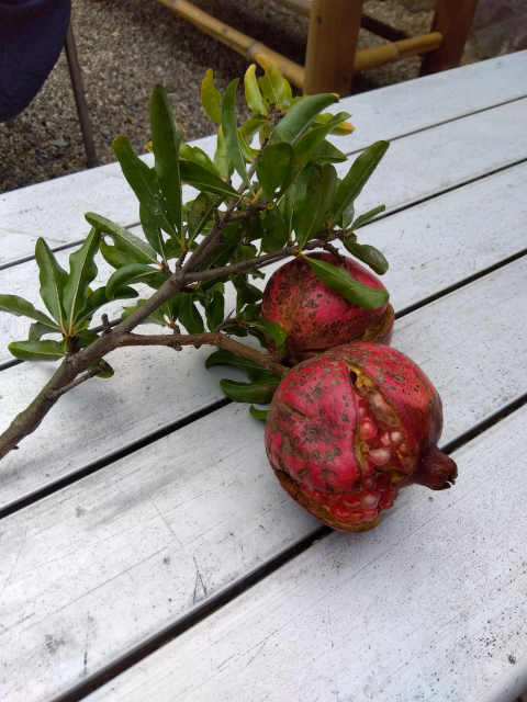 鬼子母神様も持っていらっしゃる子孫繁栄の象徴「ザクロ」は、龍神様の横に植わっています。