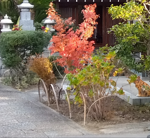 新1年生のもみじ。紅葉するか心配していましたが小さくても見事に赤くなりました。