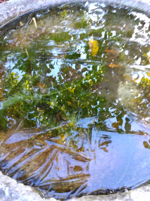 4日、恐らく今季初と思われる氷が張りました。石臼のメダカも動きません。