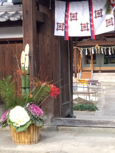26日、門松を作りました。奥に見えるしめ縄も手製です。