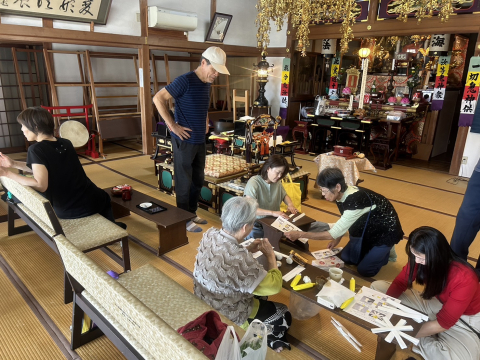 ティッシュペーパーを素材に成型、最後は炙って松茸らしい色付をしました。